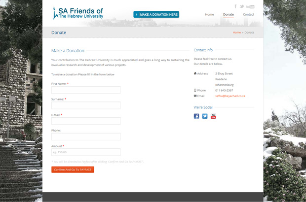 SAFHU aim was to design a site that would act as a solid vehicle to both inform and to raise funds, through an integrated Donation Mechanism. The site has and continues to be a successful platform in achieving this aim.